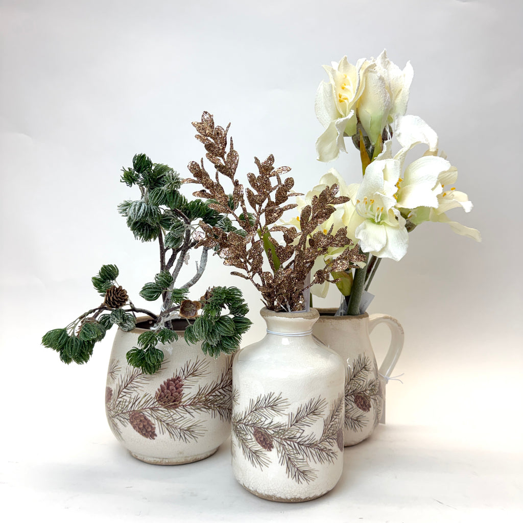 Kaunis keramiikkakannu kukkasille tai koristeoksalle sisustukseen. Korkeus 16cm.