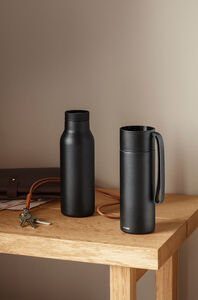 Eva Solon To Go -termosmuki pitää juoman kuumana jopa 6 tuntia ja kylmänä jopa 12 tuntia. Rosterinen termosmuki kestää kovaakin käyttöä. Muki sulkeutuu täysin tiiviisti, joten se on helppo ottaa mukaan vaikka laukkuun tai autoon. Muki sopii useimpien autojen mukitelineisiin (halkaisija 7 cm) ja click open -kannen ansiosta avaaminen ja sulkeminen käy kätevästi yhdellä kädellä. Korkissa on kätevä lenkki, joka helpottaa termosmukin mukana kantamista esimerkiksi kaupungilla kävellessäsi. Kestää konepesun. Vetoisuus 0,35 l.