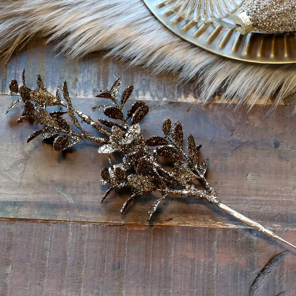 Kaunis koristeoksa sisustukseen, pituus 30 cm. Upea shampanjanvärinen glitteröinti.