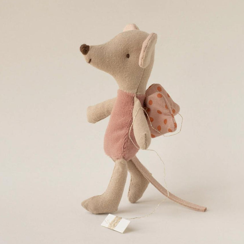 Pehmeä, pieni hiiri, korkeus 11cm. Pesu 30cm.