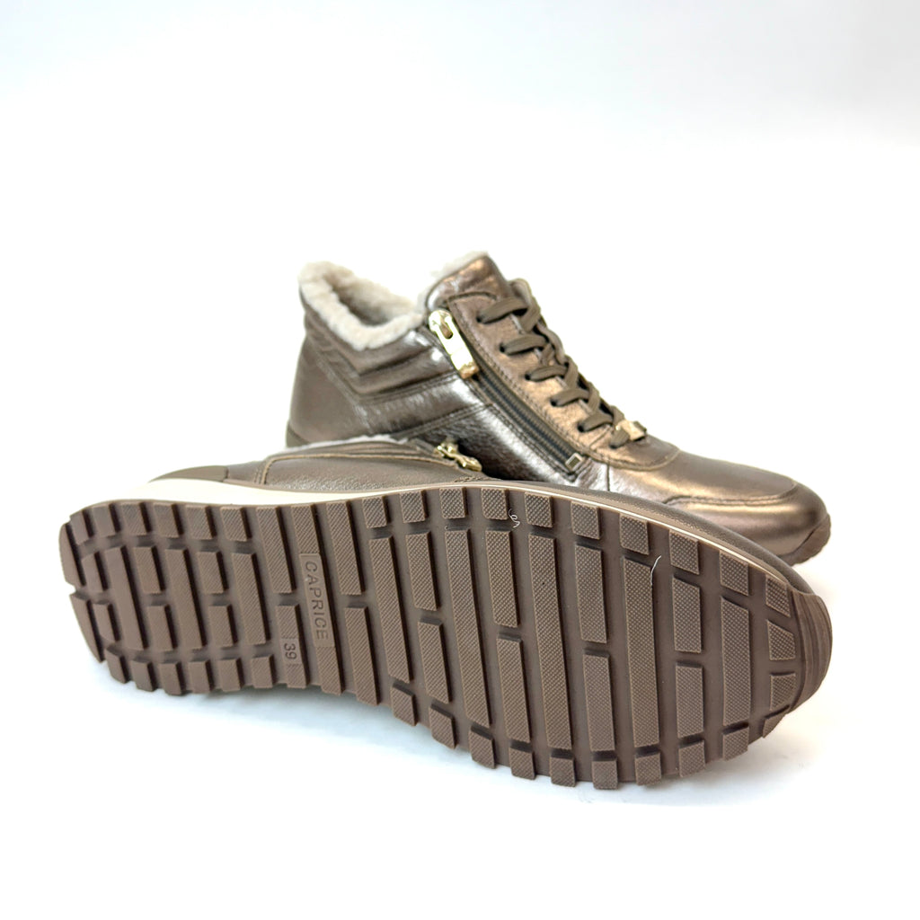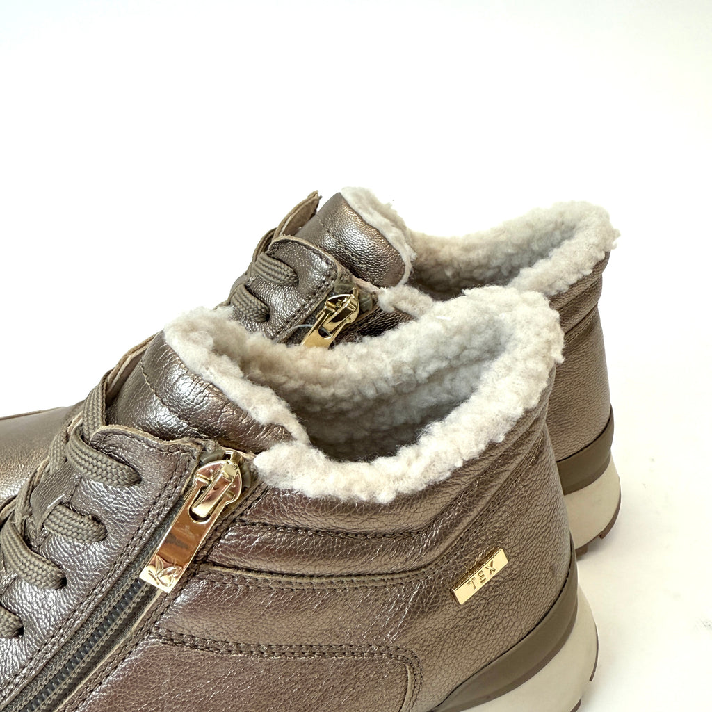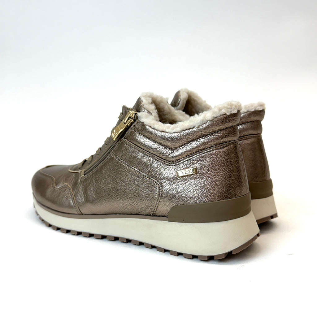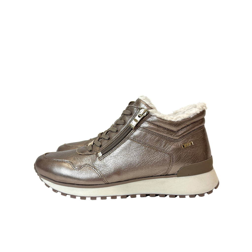Tyylikäs talvikenkä nahkaa, upea metalliväri.