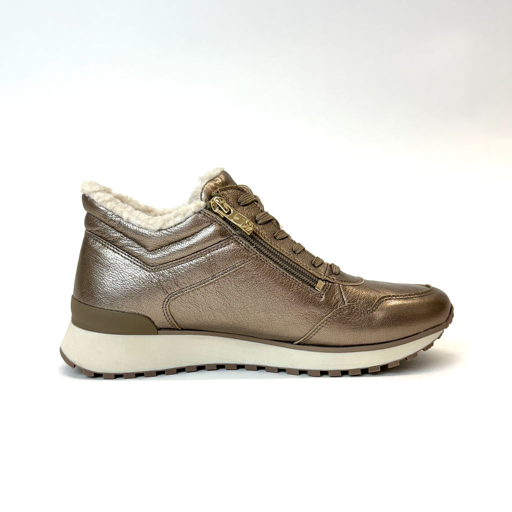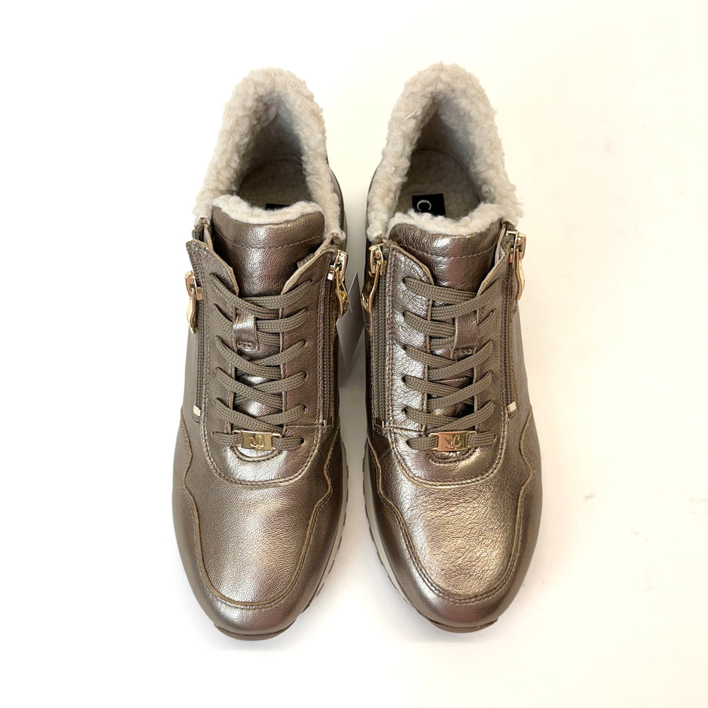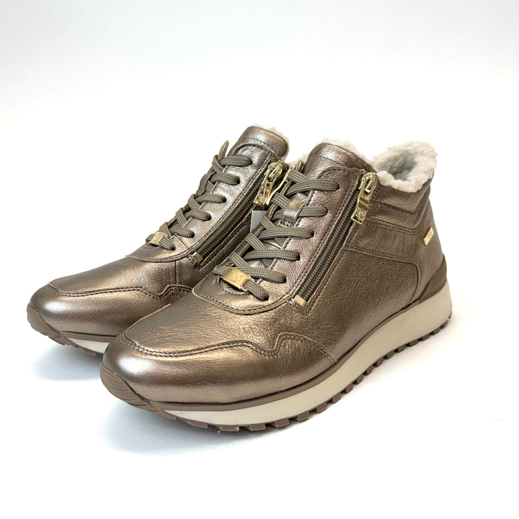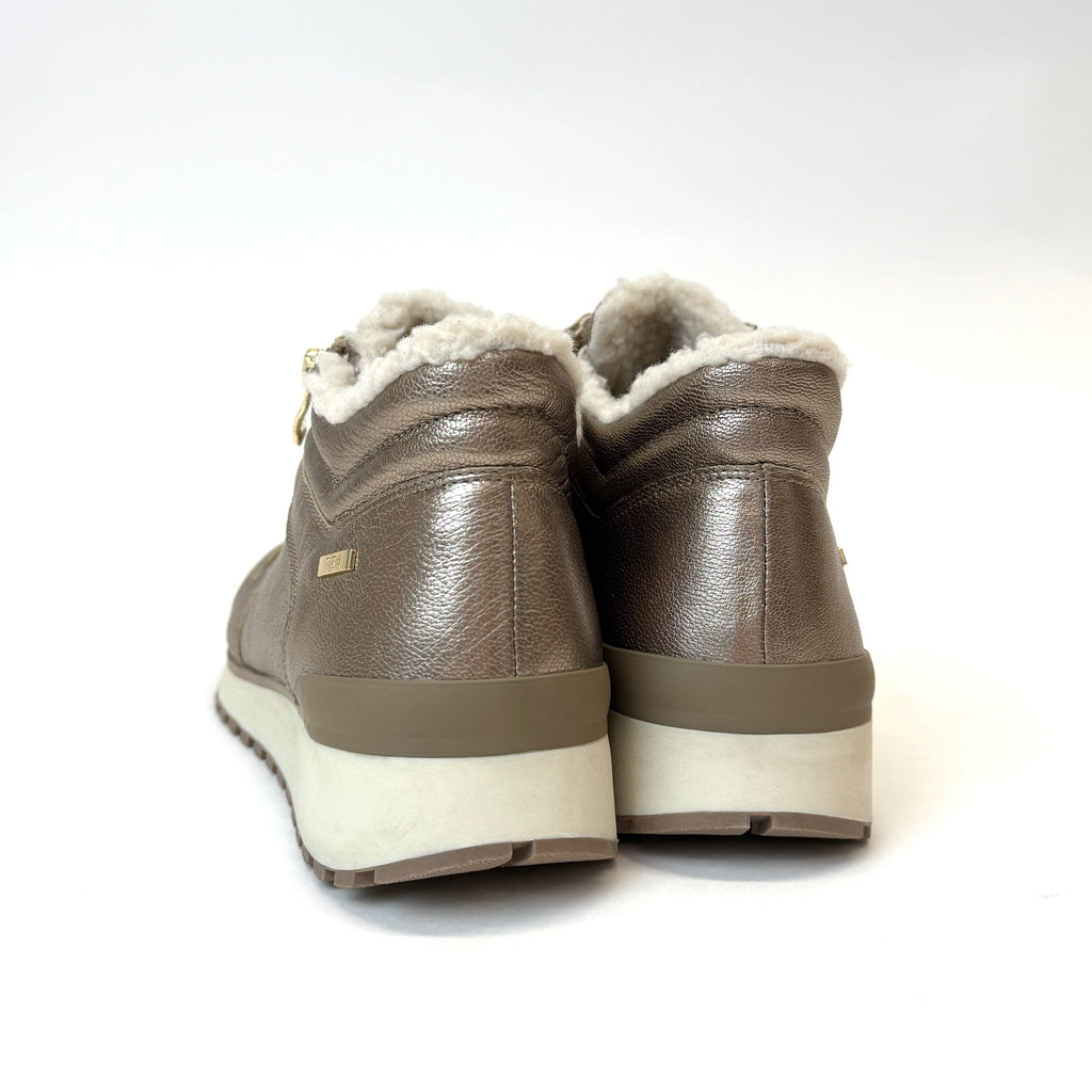 Tyylikäs talvikenkä nahkaa, upea metalliväri.
