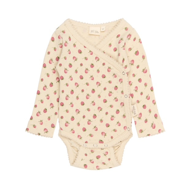 Pitkähihainen kietaisumallinen body ihanan pehmeää puuvillaa. Edessä ja haaroissa nepparikiinnitys. 100% puuvilla, hienopesu 30 asteessa.
