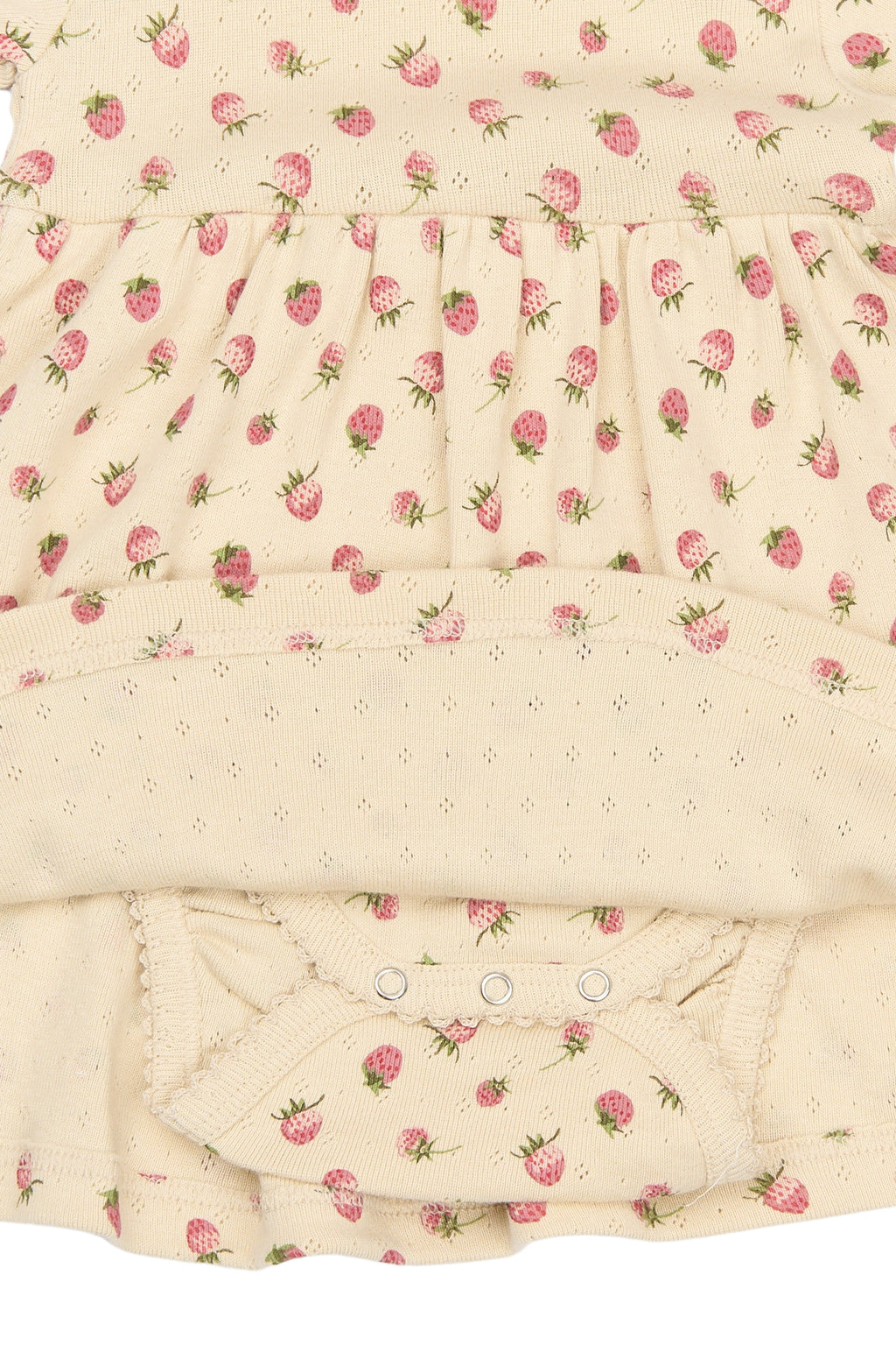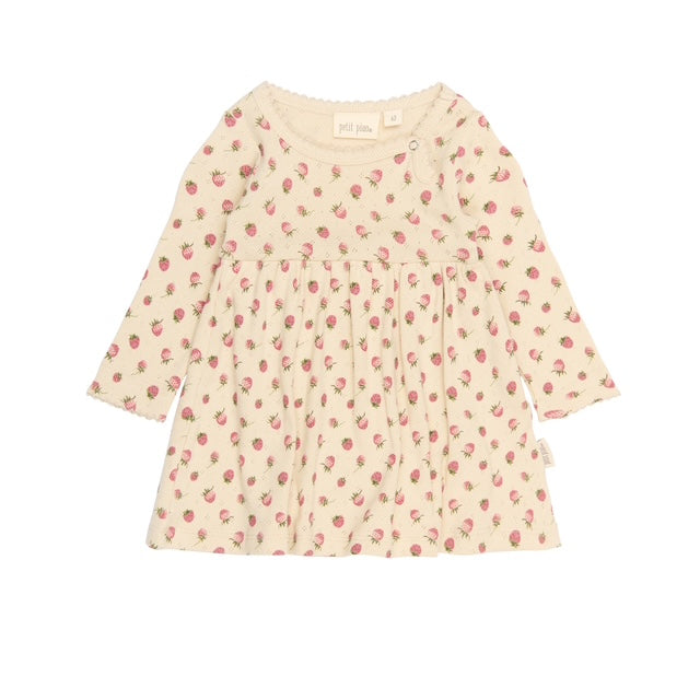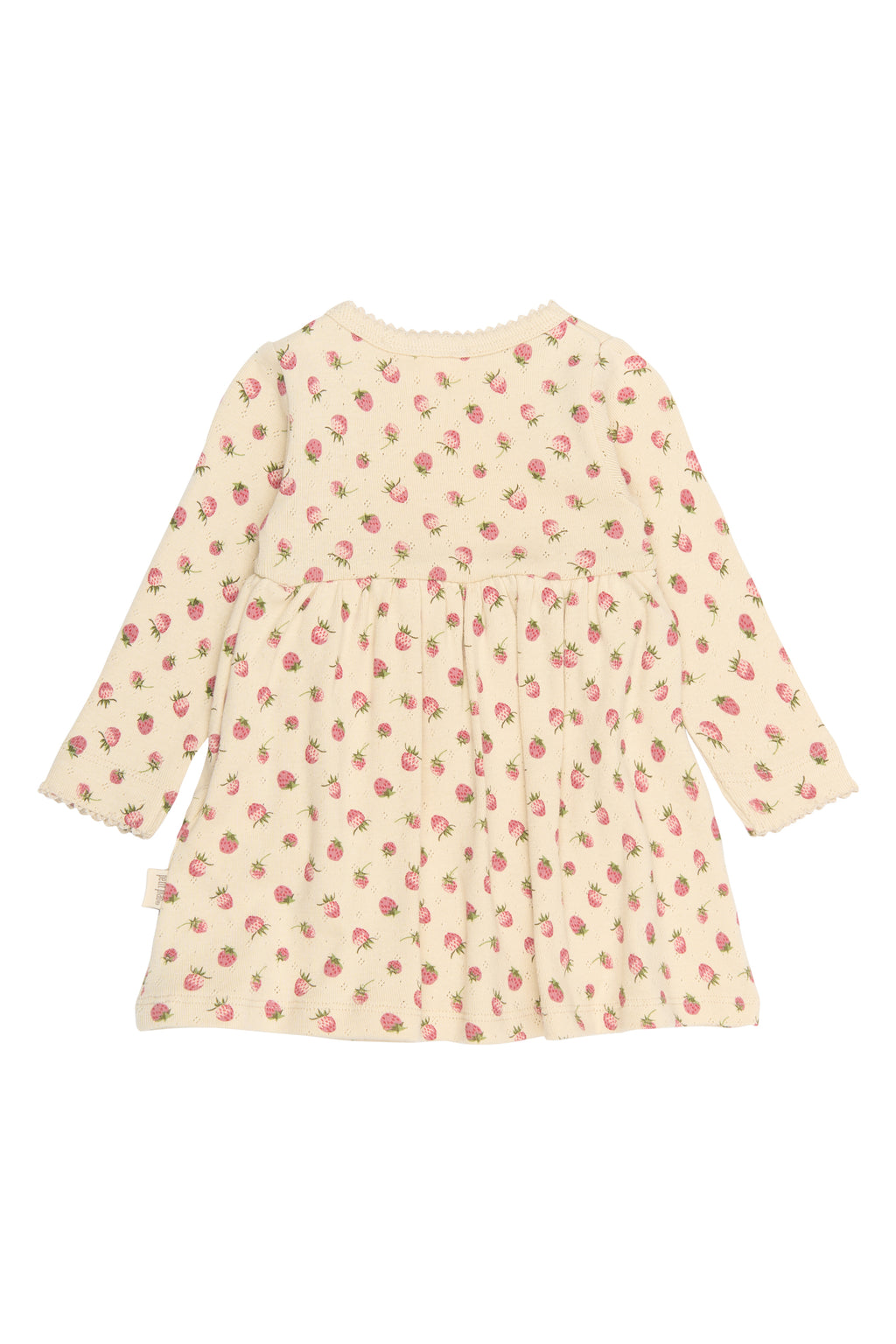 Mekko ihanan pehmeää puuvillaa. Pääntiessä nepparikiinnitys, poikkileikkaus ja rypytykset rinnan alapuolella. Sisäpuolella housuosa, jossa haaroissa nepparikiinnitys. 100% puuvilla, hienopesu 30 asteessa.