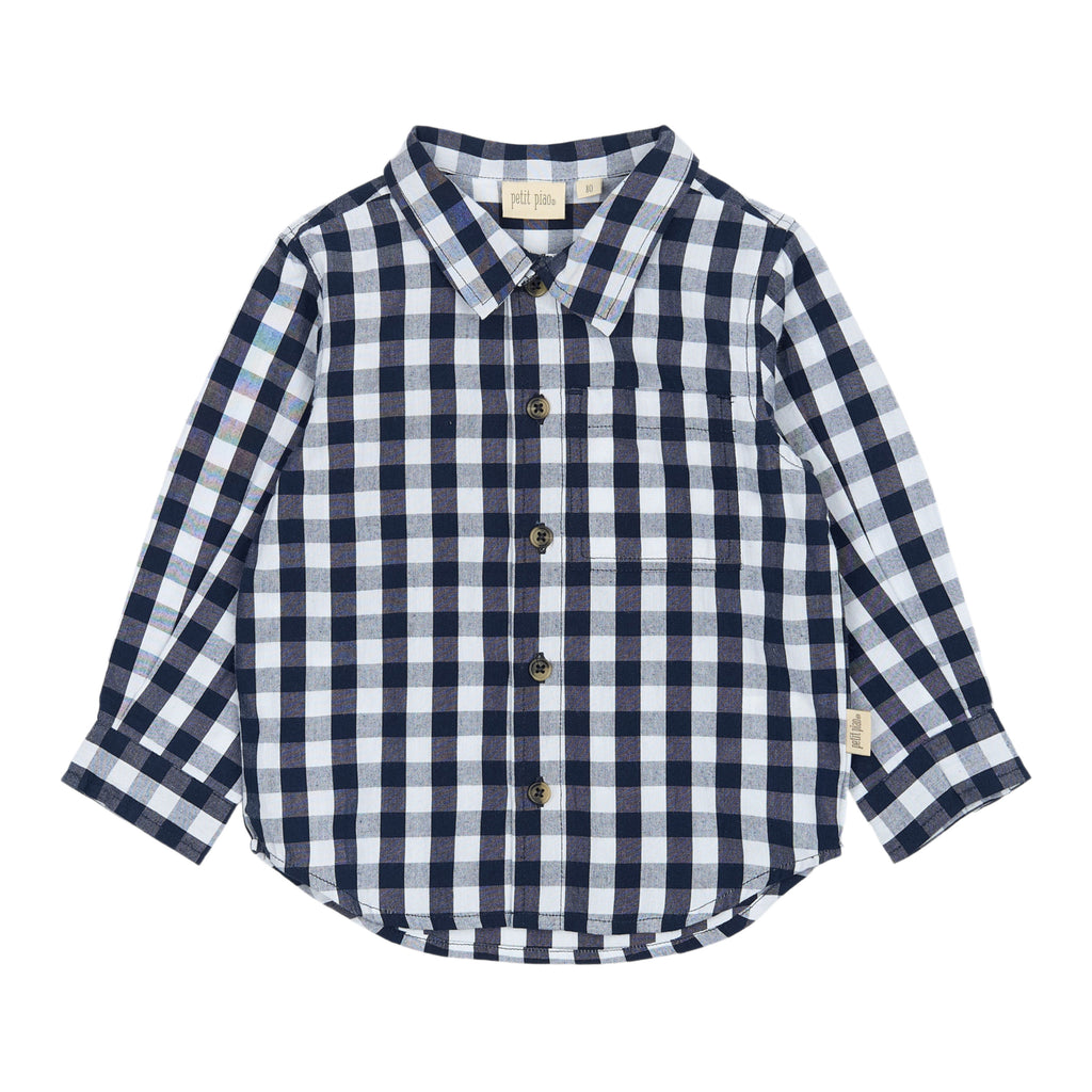 Sympaattinen ruutupaita, napit edessä ja hihansuissa, rintatasku ja pyöristetty helma. 100% puuvilla, pesu 30 astetta.