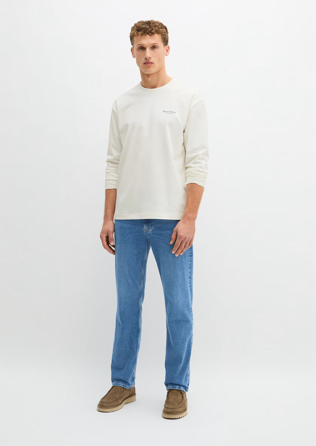 Pitkähihainen T-paita ryhdikästä laadukasta puuvillaa. Pyöreä pääntie resorineuloksella, suora helma ja hihansuut. Seläss kuva, rinnassa tekstilogo. 100% puuvilla, hienopesu 30 asteessa.