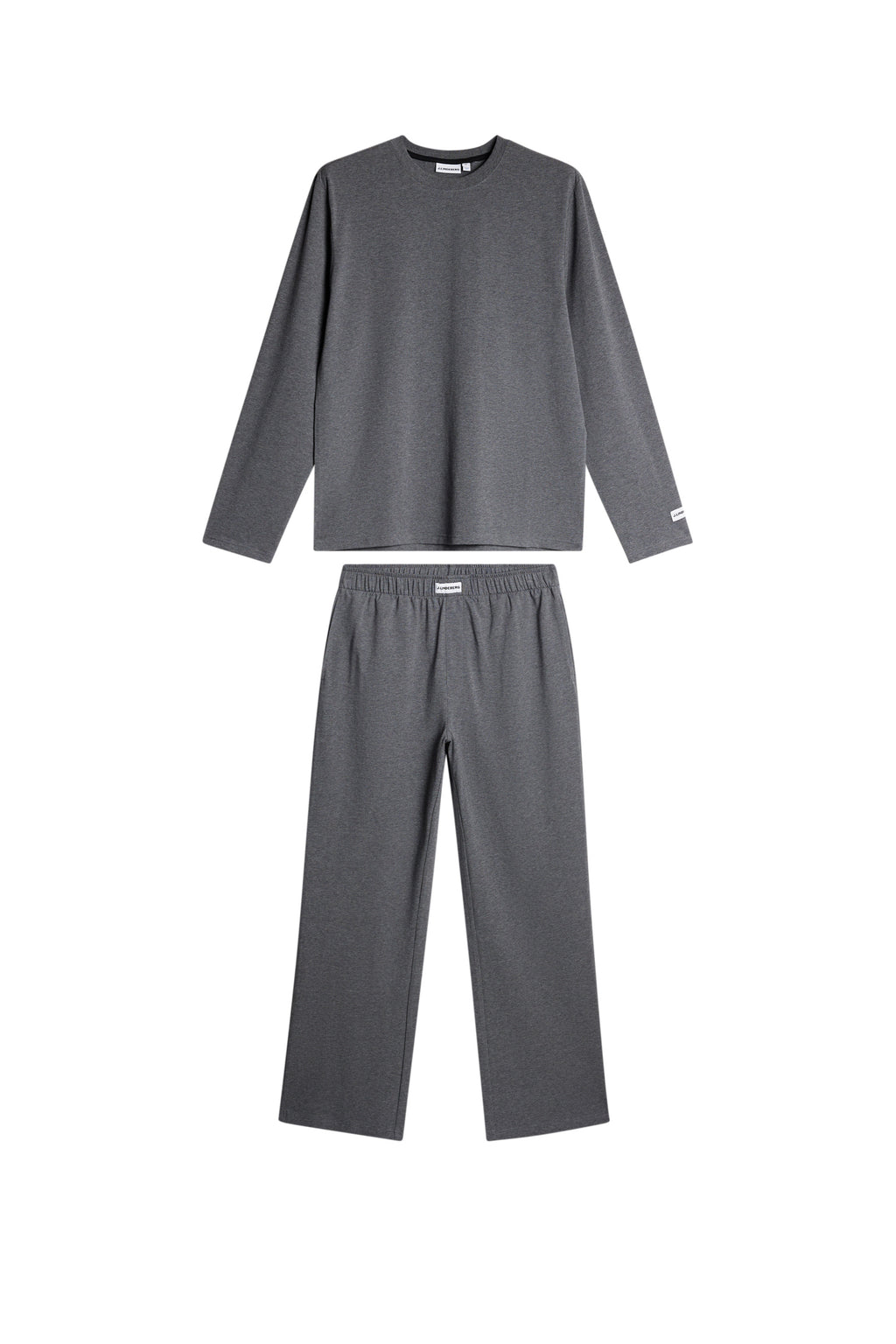 Pyjamasetti laadukasta joustavaa puuvillaa. Housuissa kuminauhavyötärö, suora lahje, sivuilla taskut. Paidassa pyöreä pääntie, suora malli. 95% puuvilla 5% elastaani, konepesu 40 asteessa.