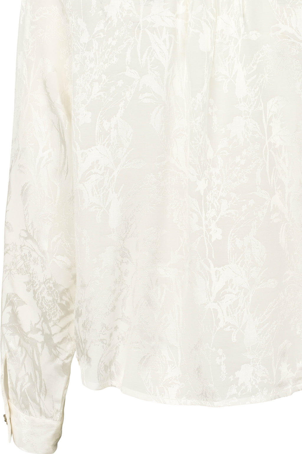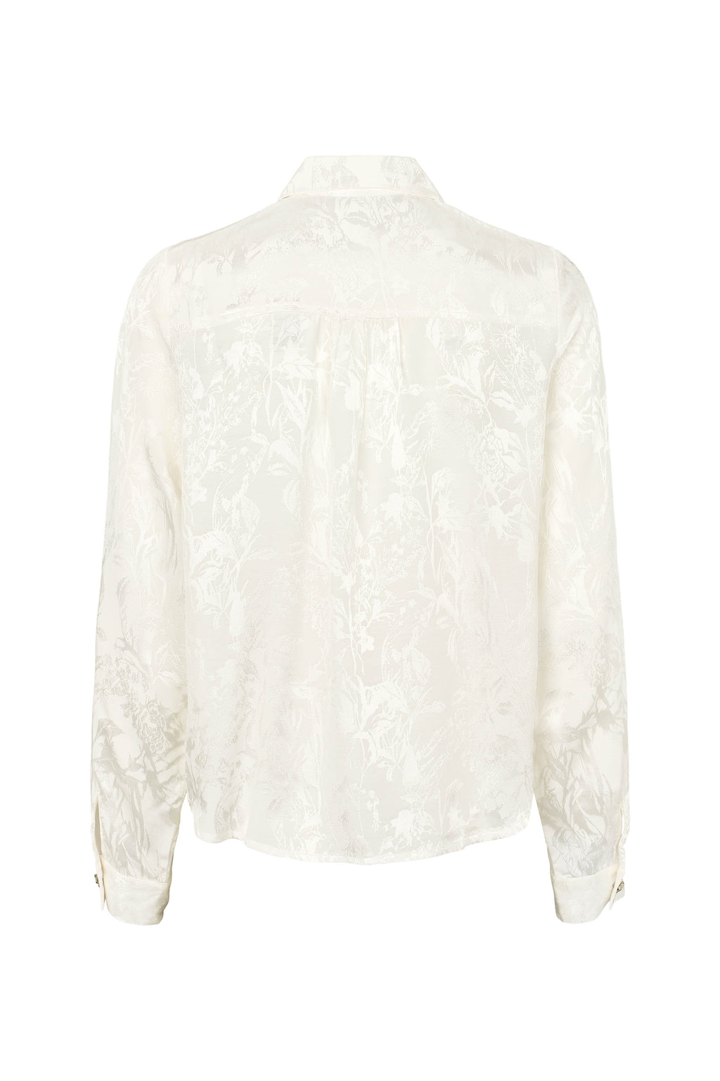 Suora paitapusero, jossa pyöristetty helma. Kaunis kuvioitu, hillitty, aavistuksen hohtava kangas. Nappilista piilossa, paitsi ylimmäisenä oleva koristenappi. Samanlaiset koristenapit hihansuissa. 60% viskoosi, 40% rayon, pesu 30 astetta.