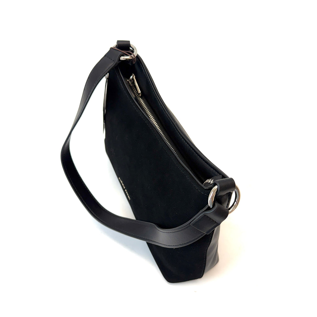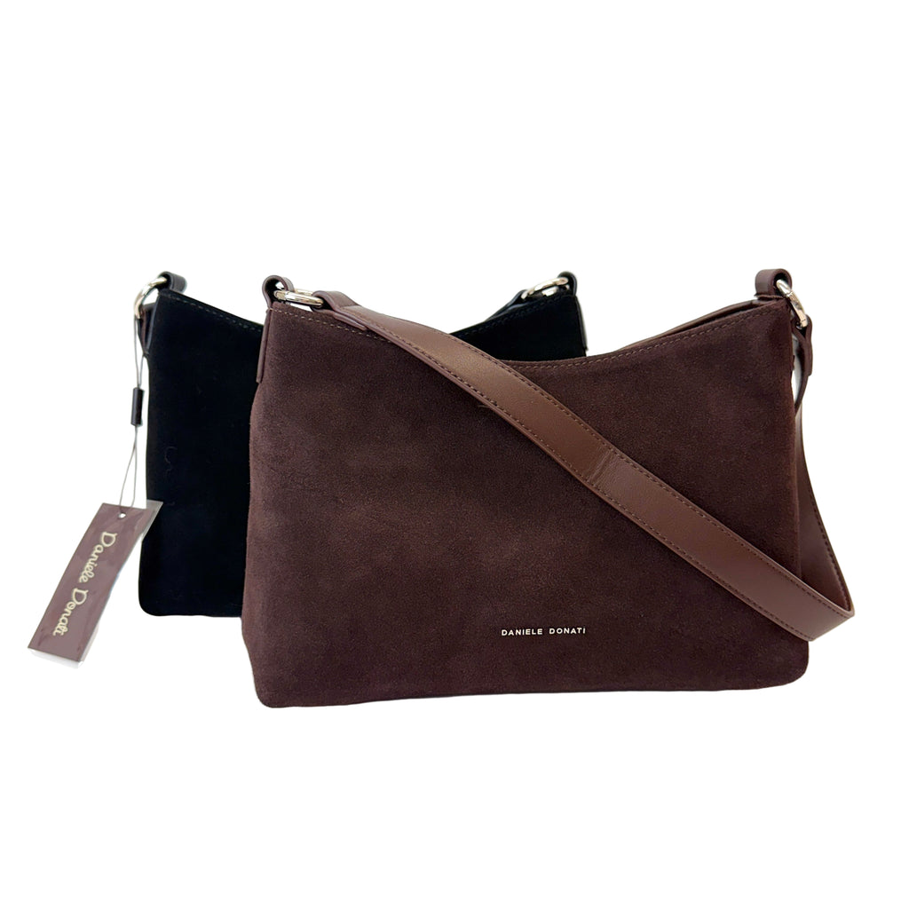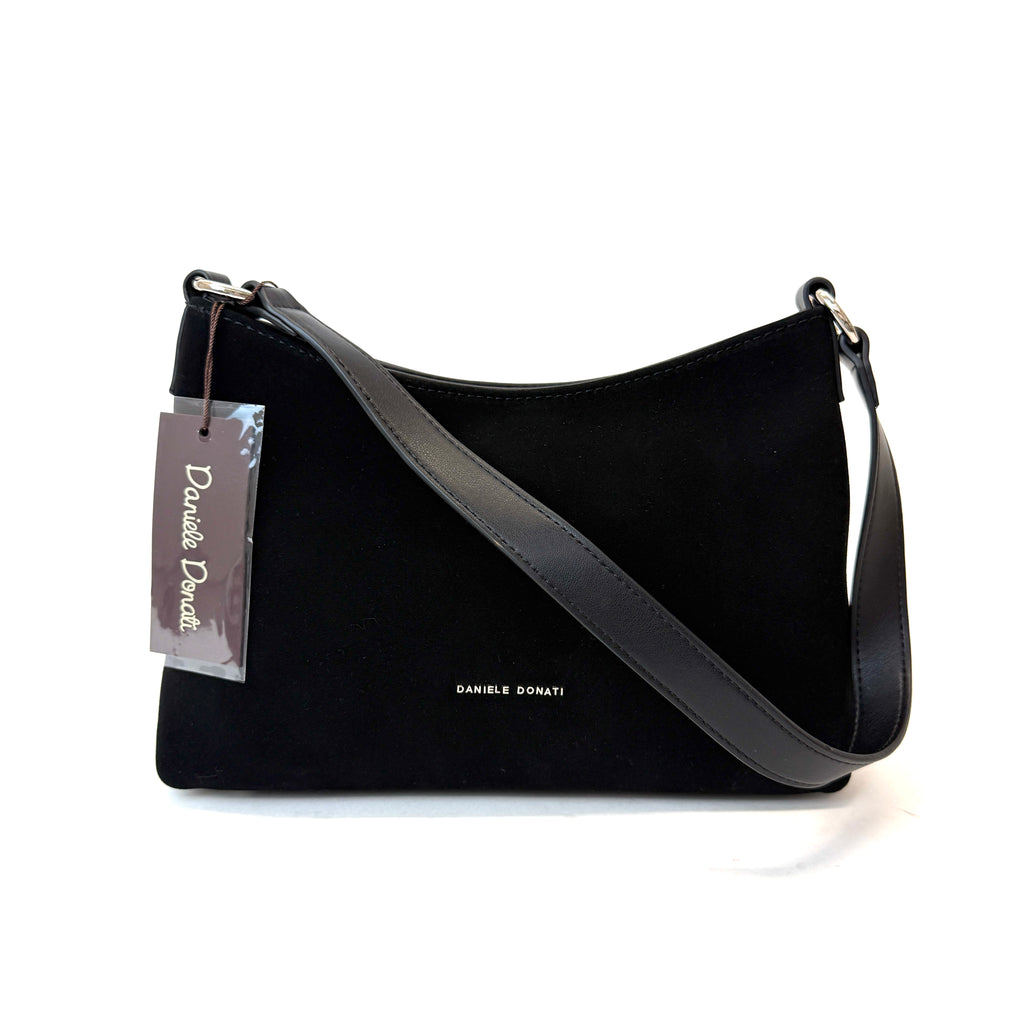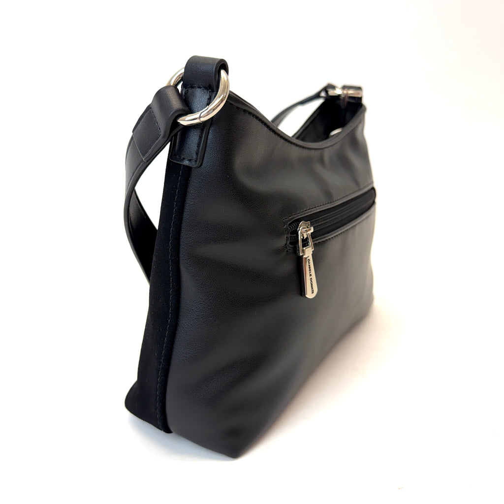 Sopivan kokoinen olkalaukku keinomateriaalia, toinen puoli mokkamainen ja toinen sileä. Kiinteä pikkuhihna ja irrotettava pidempi säädettävä hihna. Vetoketjutasku ulkona ja sisällä. Sisällä myös pikkutasku. Koko 29 x 19cm.
