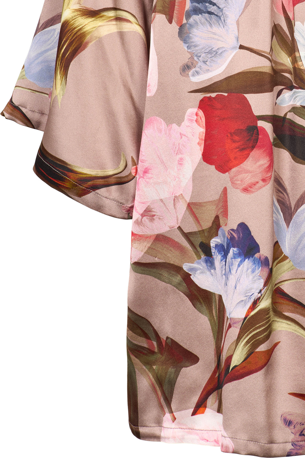 Paita joustavaa silkkiä. Pyöreä pääntie, jossa nappikiinnitys ja laskokset edessä. Kyynärtaipeeseen ulottuvat levenevät hihat. 95% silkki 5% elastaani, hienopesu 30 asteessa.