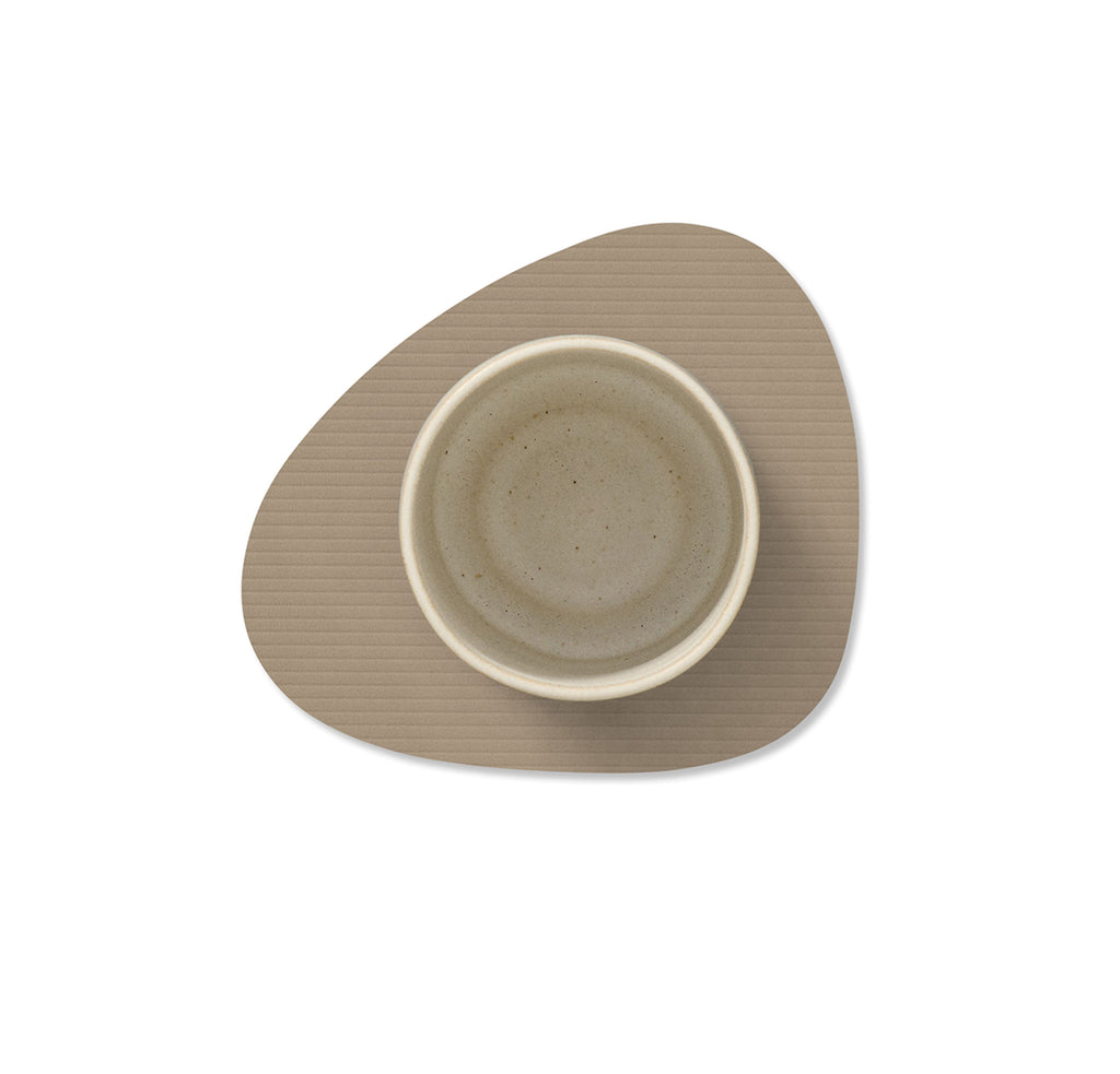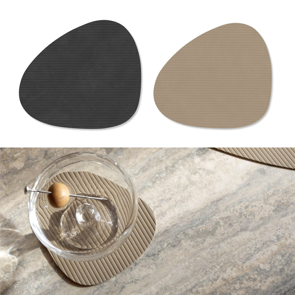 Tanskassa suunnitellut ja valmistetut Corduroy-lasinaluset on valmistettu OEKO-TEX®-sertifioidusta kierrätysnahasta, joka koostuu 80 % huonekalu- ja muotiteollisuuden ylijäämänahasta ja 20 % luonnonkumista. Tämä ympäristöystävällinen materiaali on paitsi kestävä myös vettähylkivä ja helppo puhdistaa, mikä tekee lasinalusista käytännöllisen ja pitkäikäisen valinnan. Koko 11 x 13cm.