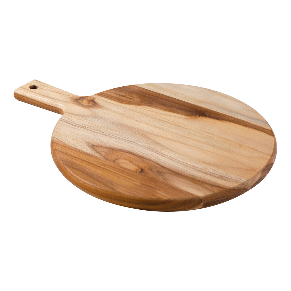 Kaunis tiikkipuinen leikkuu- ja tarjoilualusta kotikeittiön herkullisimmille pizzoille. Soveltuu erinomaisesti myös alkupalojen, juustojen ja jälkiruokien tarjoiluun. Kahvan ansiosta tarjoilualustaa on helppo käsitellä ja siirtää. Tarjoilualusta on valmiiksi öljytty – öljykäsittely suojaa puumateriaalia ja helpottaa puhdistamista. Materiaali: FSC-sertifioitua tiikkiä. Tiikki on ihanteellinen materiaali leikkuu- ja tarjoilulautoihin, sillä se sisältää luontaisia öljyjä, jotka ehkäisevät lautojen halkeilua ja vääntymistä. Tästä syystä tiikkiä käytetään paljon myös mm. ulkokalusteissa ja veneiden pintamateriaaleina.