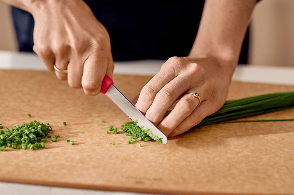 Victorinoxin legendaarinen sahalaitainen tomaattiveitsi sopii monenlaiseen käyttöön aina tomaattien ja muiden mehevien raaka-aineiden viipaloinnista tuoreiden sämpylöiden halkaisuun ja pizzan paloitteluun.