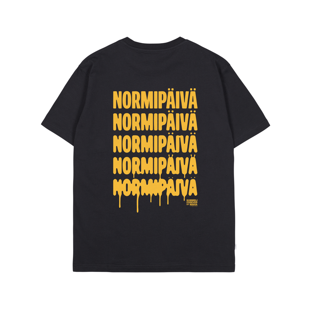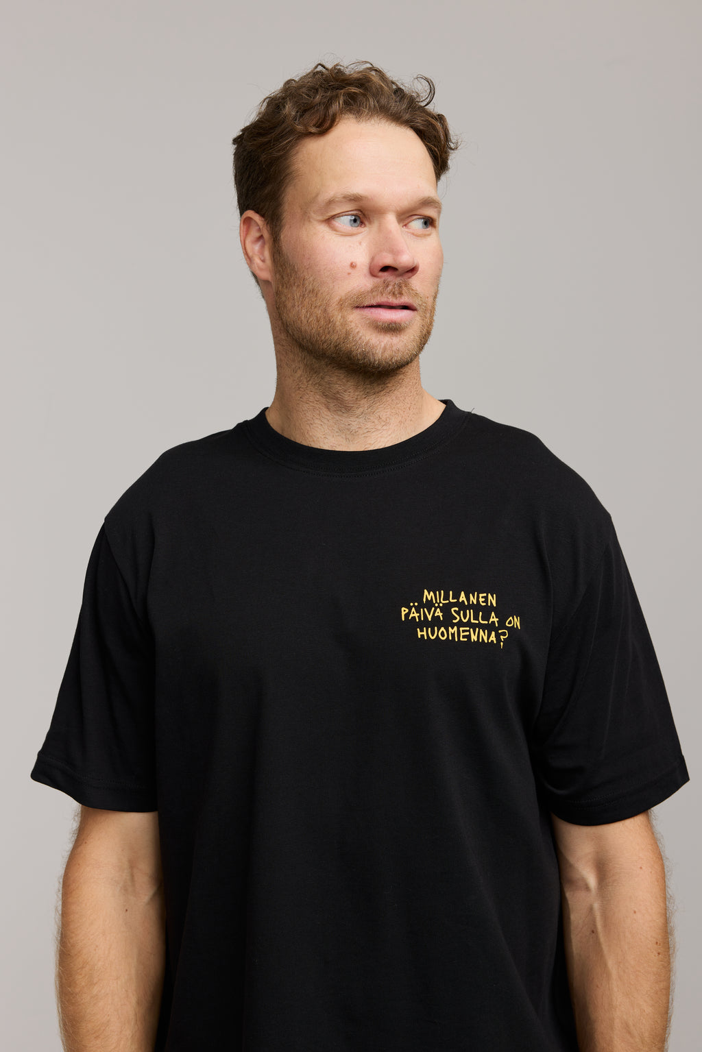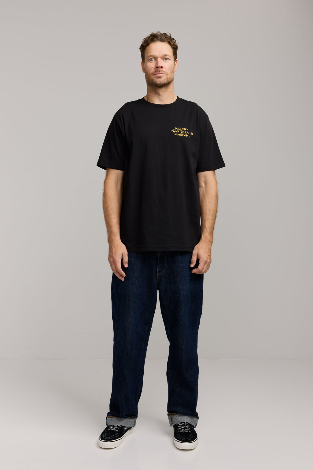 T-paita, jonka selässä iso printti ja rinnassa pienempi. Unisex, regular fit, 100% puuvilla, pesu 40 astetta.