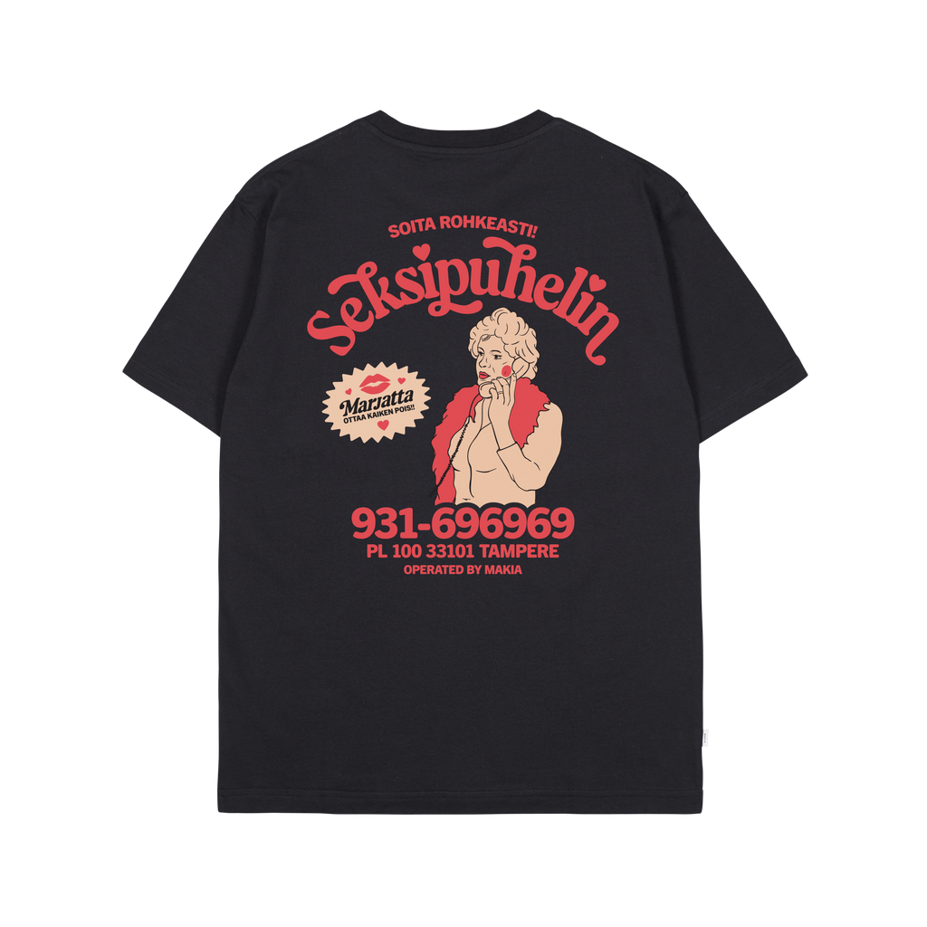 T-paita, jonka selässä iso printti ja rinnassa pienempi. Unisex, regular fit, 100% puuvilla, pesu 40 astetta.