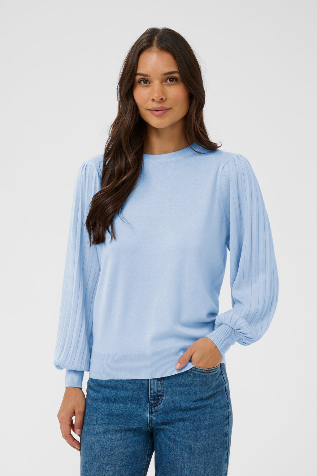 Pehmeä viskoosineulospaita, kaunis leveä hiha raitaneulosta. 80% viskoosi, 20% nailoni, pesu 30 astetta, voi kutistua max 3-5%,
