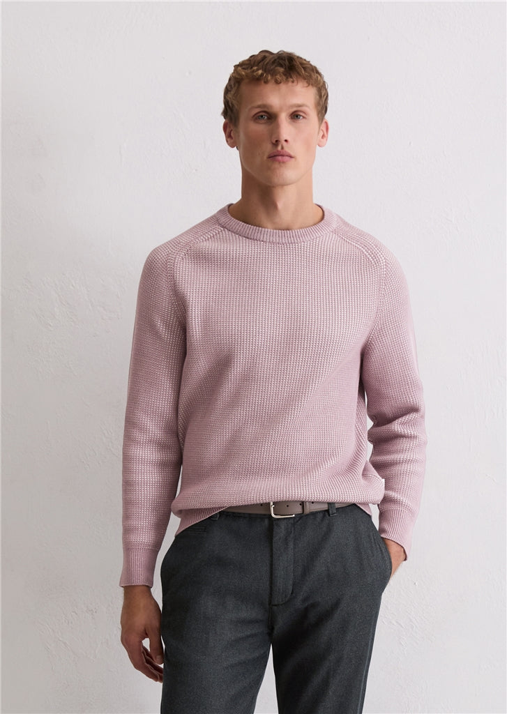 Puuvillaneule, jossa kaunis struktuuri ja jossa varsinaista väriä raikastaa valkoinen. Helmassa ja hihansuissa resori. 100% puuvilla, pesu 30 astetta.